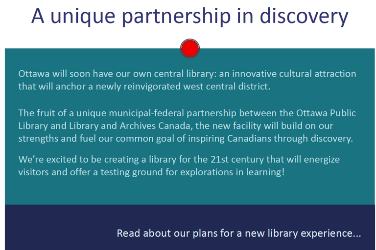 Ottawa Public Library + Library and Archives Canada: a position paper for the new central library