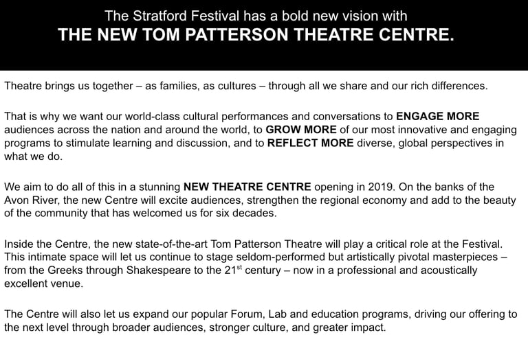 Stratford Festival: a position paper for the renewed Tom Patterson theatre